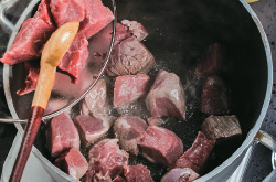 1. En una olla sofría bien la carne con un chorro de aceite, sal y