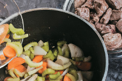 3. En la misma olla agregue el resto del aceite, la zanahoria, el apio y