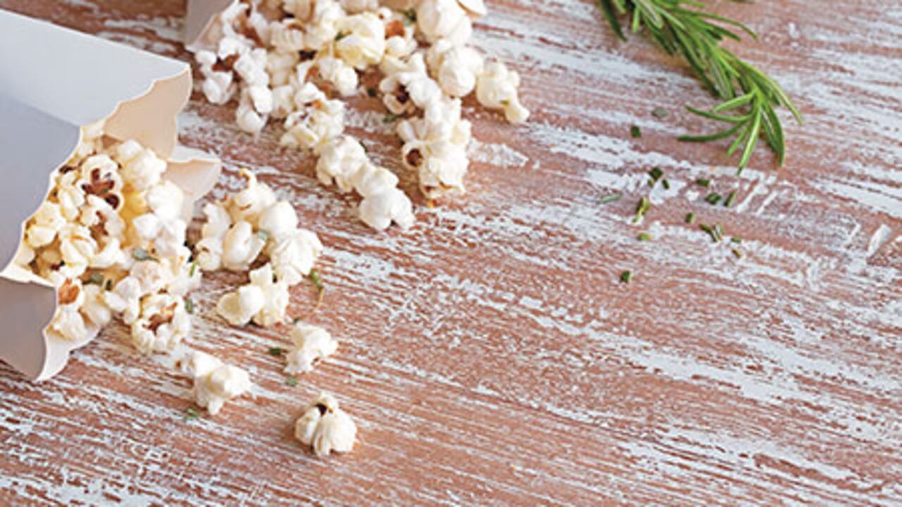 Pase las crispetas a un tazón y descarte los granos que no explotaron. Con la ayuda de una espátula sazónelas con el aceite de romero y con el queso parmesano.