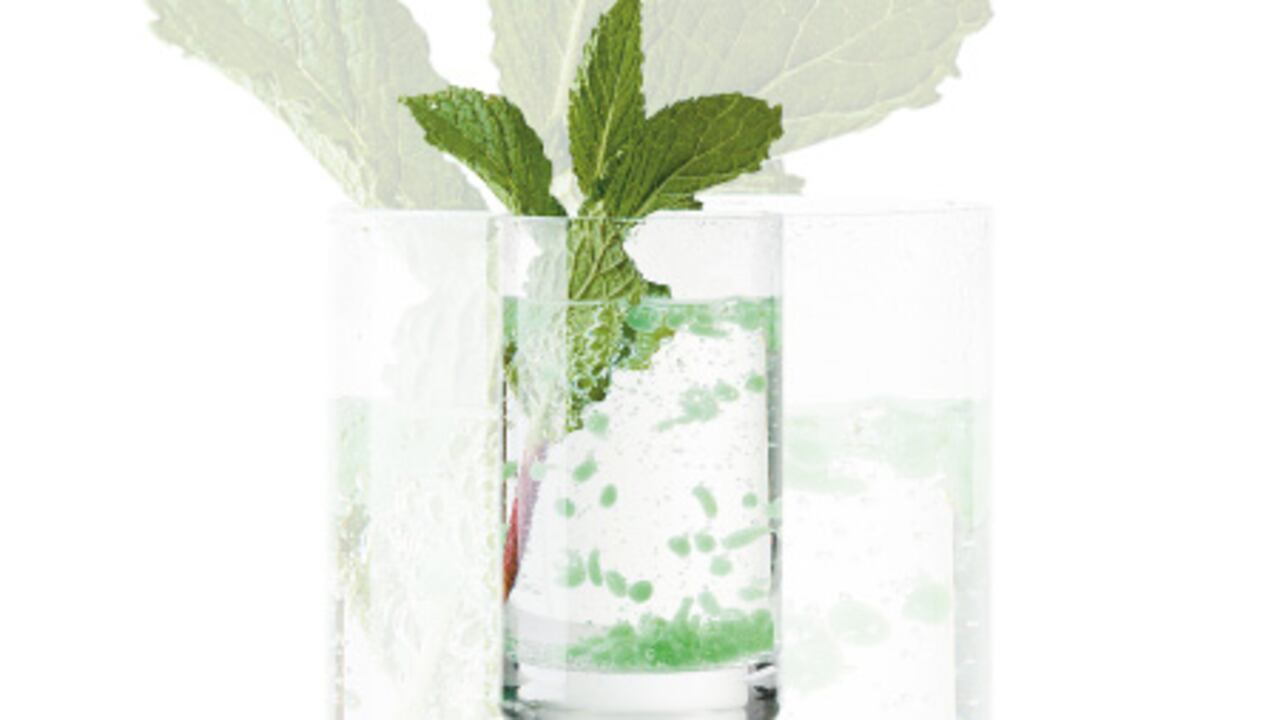 Licúe las hojas de hierbabuena,el jarabe de azúcar y el jugo de limón.