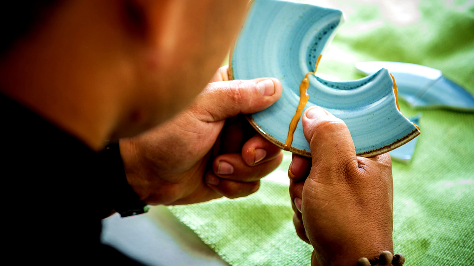 La técnica de origen japonés tiene como propósito sanar heridas emocionales y reconstruir vidas mediante la reparación de vasijas y céramicas. © DIEGO ZAMORA | FUNDACIÓN PROLONGAR