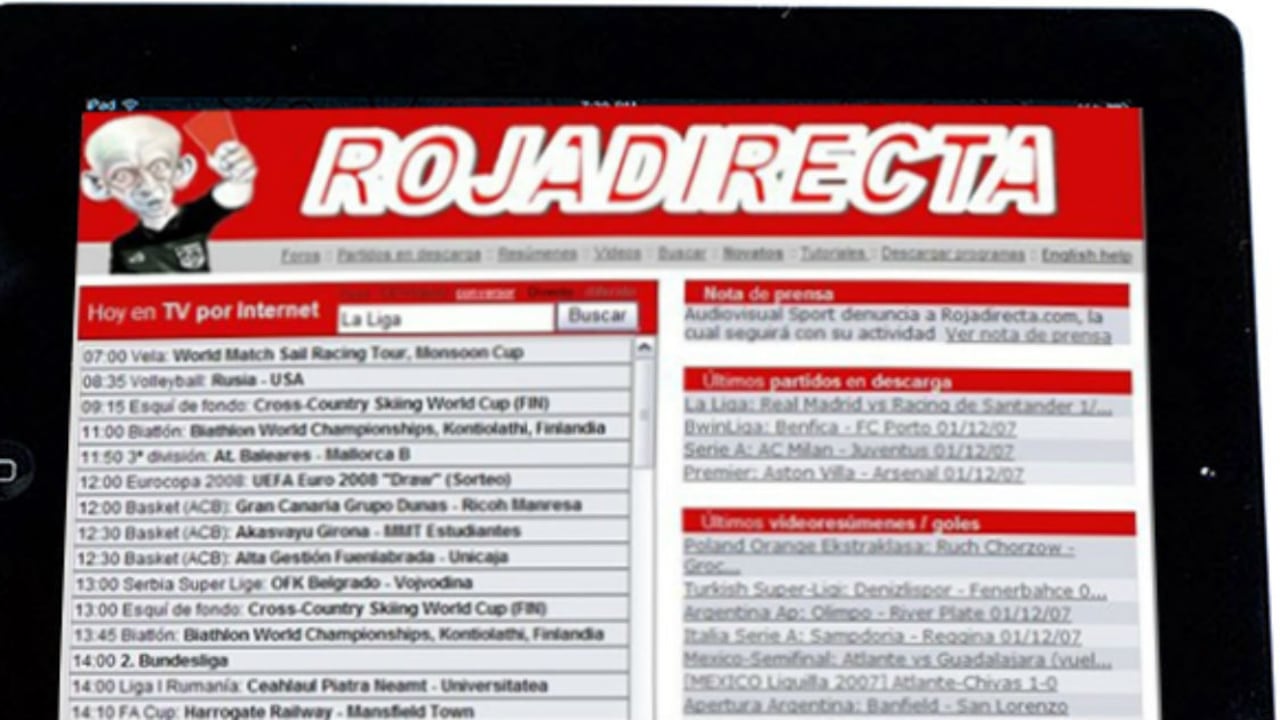 La justicia española, a la que acudieron también otras plataformas de televisión de pago como Mediapro y GolTV, debe pronunciarse sobre la legalidad de Rojadirecta en un juicio para el que aún no hay fecha.