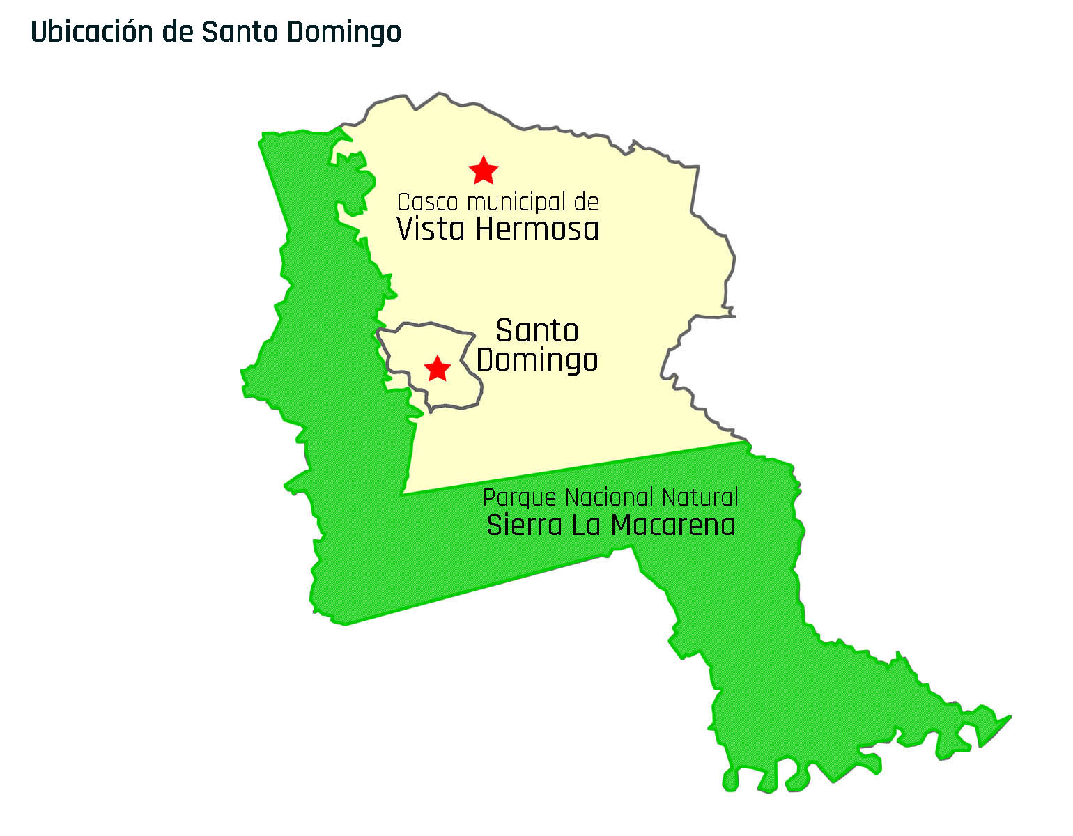 Santo Domingo es un cacerío de la vereda Agualinda. Para llegar hasta aquí, se debe tomar un transporte desde el casco municipal de Vista Hermosa. Hoy son cerca de 3 horas y media de recorrido.