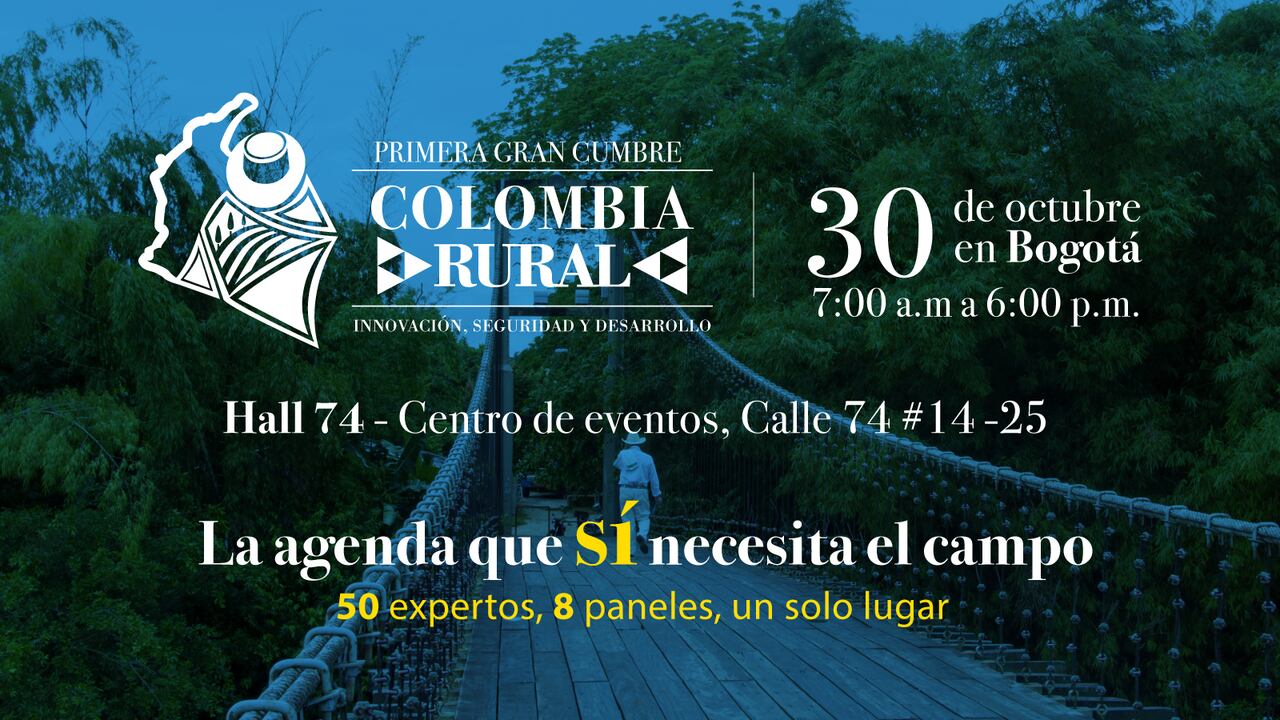 El próximo 30 de Octubre en la ciudad de Bogotá se llevará a cabo la Primera Cumbre Colombia Rural: Innovación, seguridad y desarrollo. Un espacio de diálogo donde empresarios, funcionarios públicos, presidentes de diversos gremios, académicos, periodistas y líderes de la sociedad civil debatirán sobre los temas centrales de la agenda rural del país.