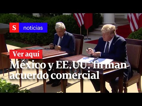 El presidente mexicano Andrés Manuel López Obrador y su homólogo de EE.UU. Donald Trump, ofrecen una rueda de prensa en el marco de su reunión bilateral.||hashtag||#SemanaNoticias