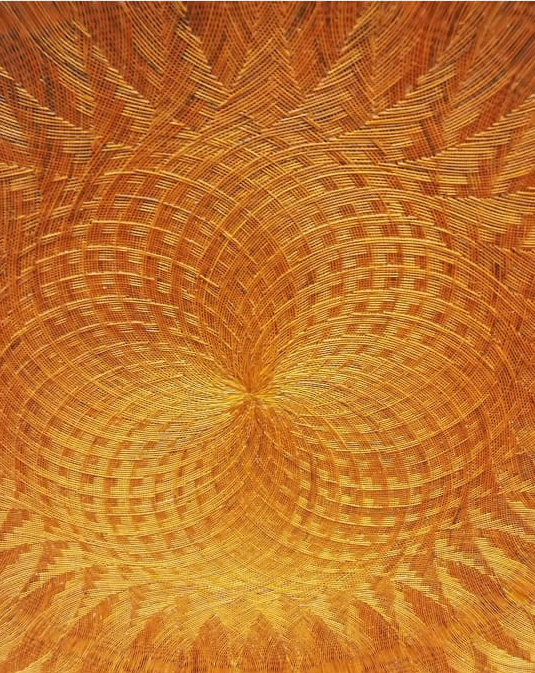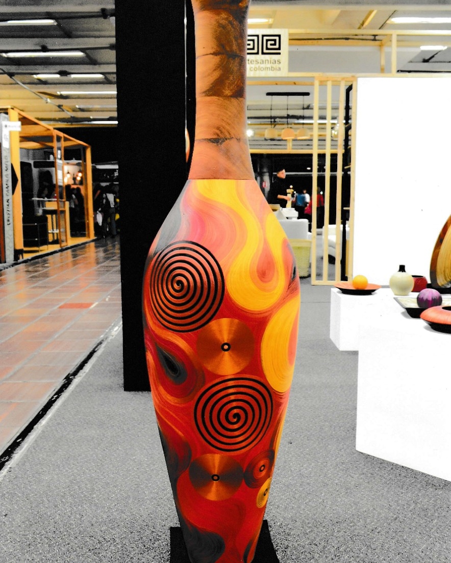 Pocos como él trabajan el tamo con tanta maestría. Con paciencia de buen artesano y la precisión de un cirujano, armado con cuchilla y una regla, corta delgados hilos del mismo grosor que luego pega, uno a uno y a la misma distancia, en materiales como cuero, madera, vidrio y cerámica. Al final, los hilos tapizan cada pieza formando oleajes de las más diversas formas y colores.