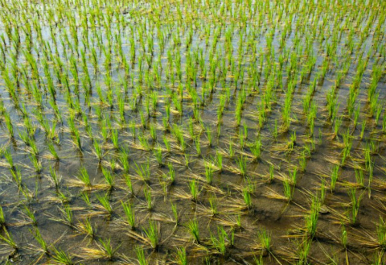 Sin embargo, el metano de origen agrícola no solo proviene de los animales. El cultivo de arroz con cáscara, en el que los campos inundados evitan que el oxígeno penetre en el suelo, crea las condiciones ideales para las bacterias emisoras de metano. Este sector representa otro 8 % de las emisiones de este gas vinculadas a los seres humanos.