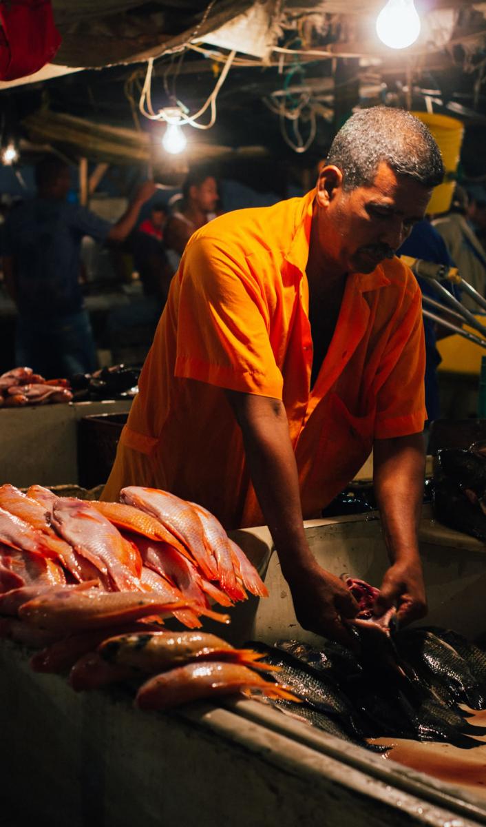 Todos comparten un espacio de aromas que lindan entre lo exótico y lo nauseabundo, al que ya son inmunes por la costumbre. Ni siquiera el olor a sangre seca, fango y agua estancada les saca una mueca entre la rutina.