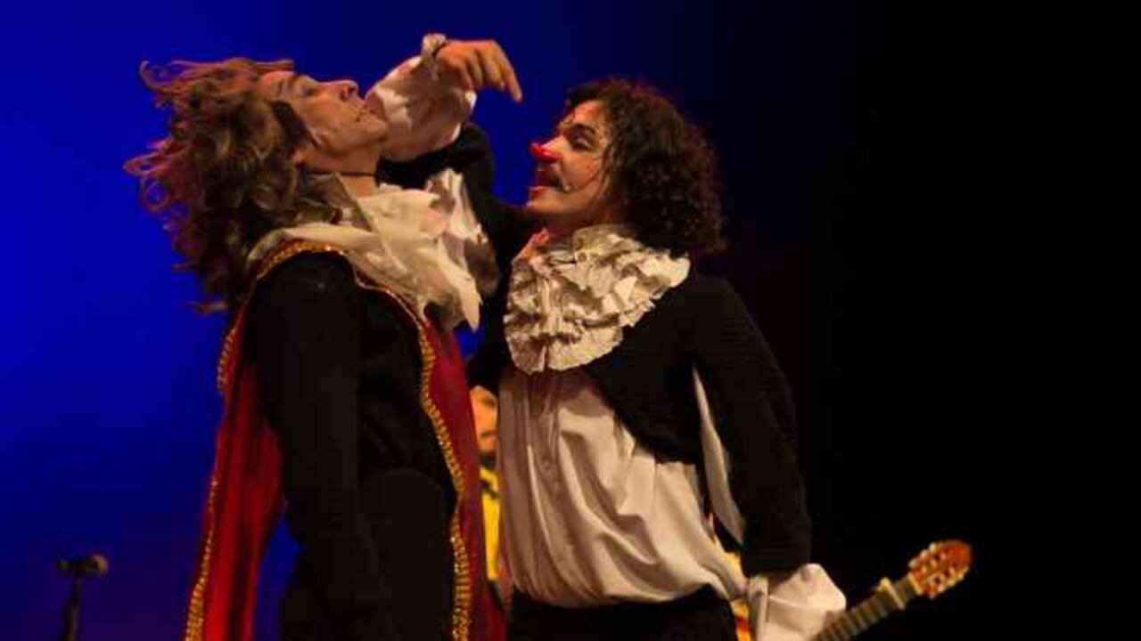 El telón se abre y la música, los colores y el talento de cinco artistas sirve de vehículo para contar una historia trágica y conmovedora, la de Cyrano de Bergerac. Pero ese talento le suma un giro interesante, en esta versión la tragedia se convierte en comedia y el amor, como debe ser, es una promesa cumplida.