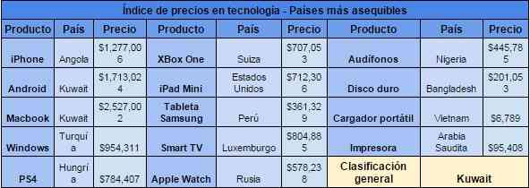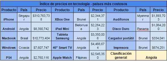 Se trata del Índice de Precios de Tecnología Global 2016, que busca comprender mejor las tendencias económicas mundiales en el precio de la tecnología. Este Índice de Precios tiene en cuenta el costo de los teléfonos inteligentes, portátiles, consolas de videojuegos, tabletas, dispositivos inteligentes y otros aparatos, clasificando a los países de acuerdo al costo promedio de todos los productos investigados.
