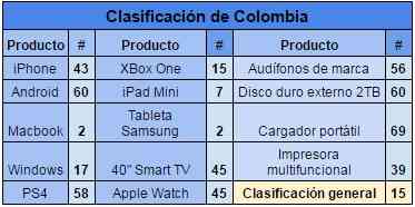 Los resultados, clasificados por orden de costo promedio de todos los productos investigados, revelan que Colombia se ubica en la posición número 15 y está en el top 10 de los países más asequibles para macbooks, iPad mini y tabletas Samsung.