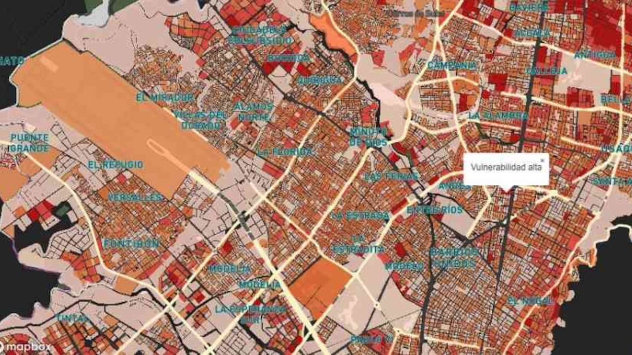 El mapa está dividido por manzanas y aparecen las zonas urbanas de los municipios del país. Esta herramienta usa las patologías como factores de riesgo que pueden generar complicaciones en personas con covid-19. Además, se analiza la cantidad de personas mayores de 60 años por manzana.
