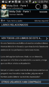 3. Verá la biblioteca de audiolibros que está en la sección. Puede buscar aquellos que tiene descarga gratuita cómo Moby Dick: