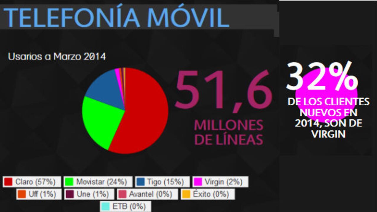 En gráficos le mostramos las cifras a marzo de 2014, del mercado TIC en Colombia. ¿Cuántos usuarios tiene cada operador en fijos y móviles?