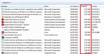 3. En la nueva ventana que se desplegó, usted verá todos los programas que tiene instalado su computador. También toda la información de su peso (lo que ocupa en la memoria) hasta el día que lo instaló: