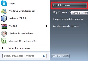 1. En el botón de inicio de Windows, busque la opción “Panel de Control”: