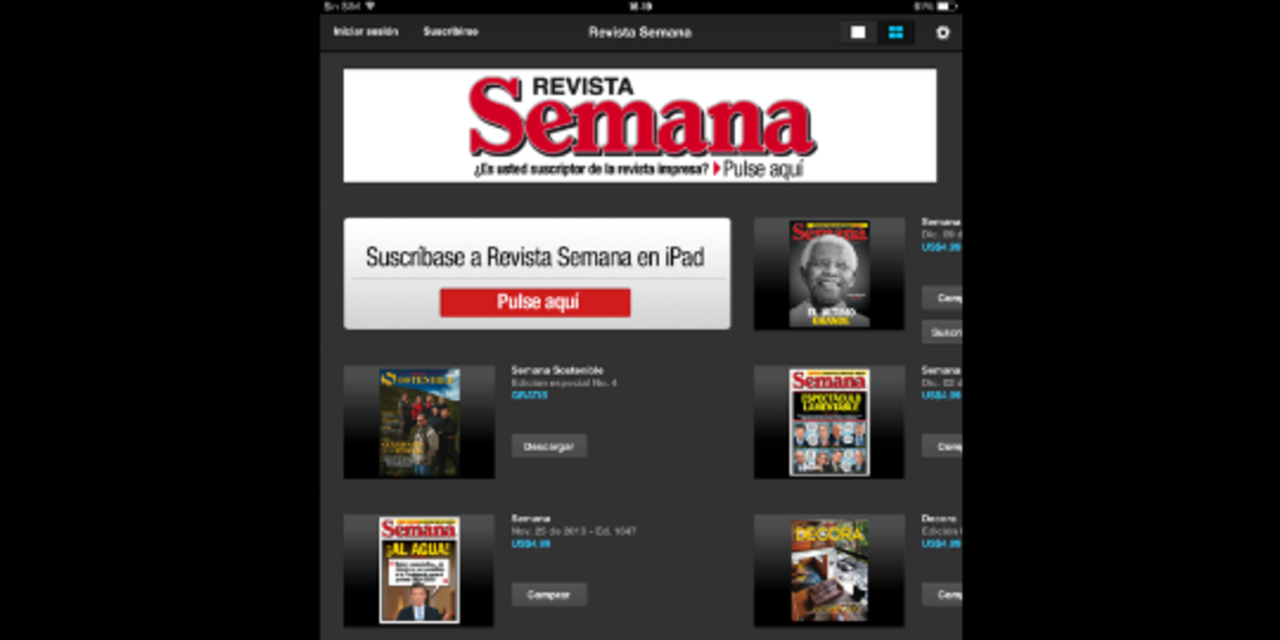 Regale una suscripción de la Revista Semana para iPad. Los precios varían según el tiempo: 1 mes – 12 dólares, 3 meses 30 dólares, 6 meses 55 dólares y 1 año 100 dólares.