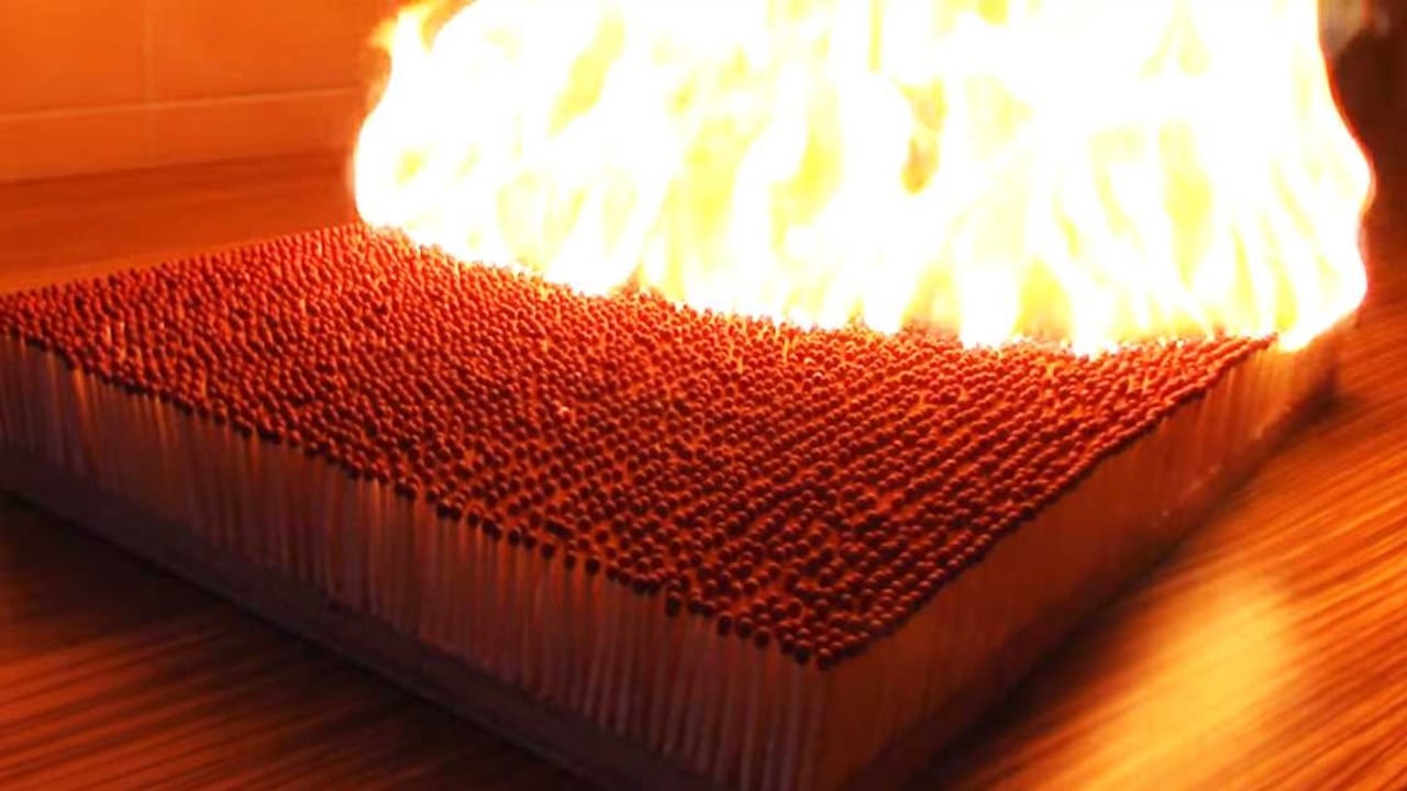 El canal de YouTube HTD se ha especializado en realizar curiosos videos con las reacciones en cadena que se dan al prender grandes cantidades de fósforos juntos. La fascinación que tenemos lo humanos por el fuego, hace de estos clips en los que se queman grupos de 1.000, 4.000 y 6.000 cerillos, sea una experiencia tan divertida como relajante.