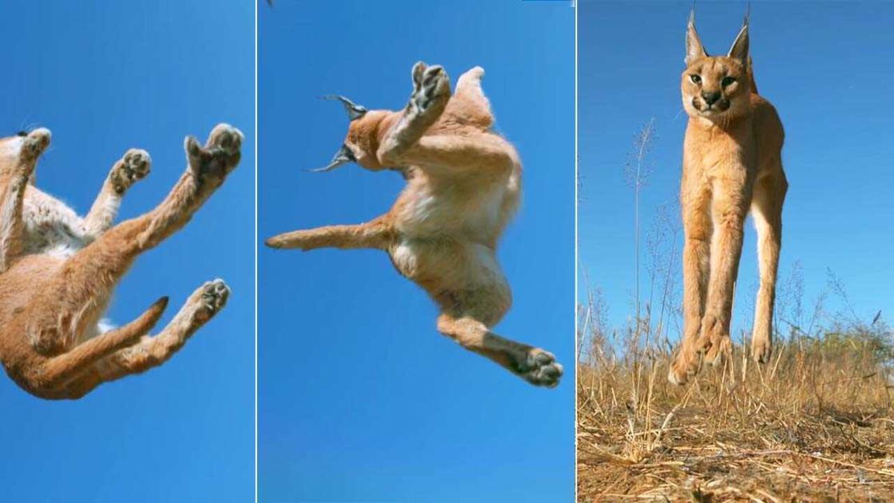 Gracias a unas imágenes tomadas a velocidad superlenta podemos ver como el cuerpo del gato dotado de 244 huesos, una espina dorsal flexible y una masa muscular privilegiada, logra tal proeza. En el siguiente video producido por la BBC se explica brevemente el movimiento que realizan los gatos al caer. (Vea: Animales que parecen sacados de la ciencia ficción)