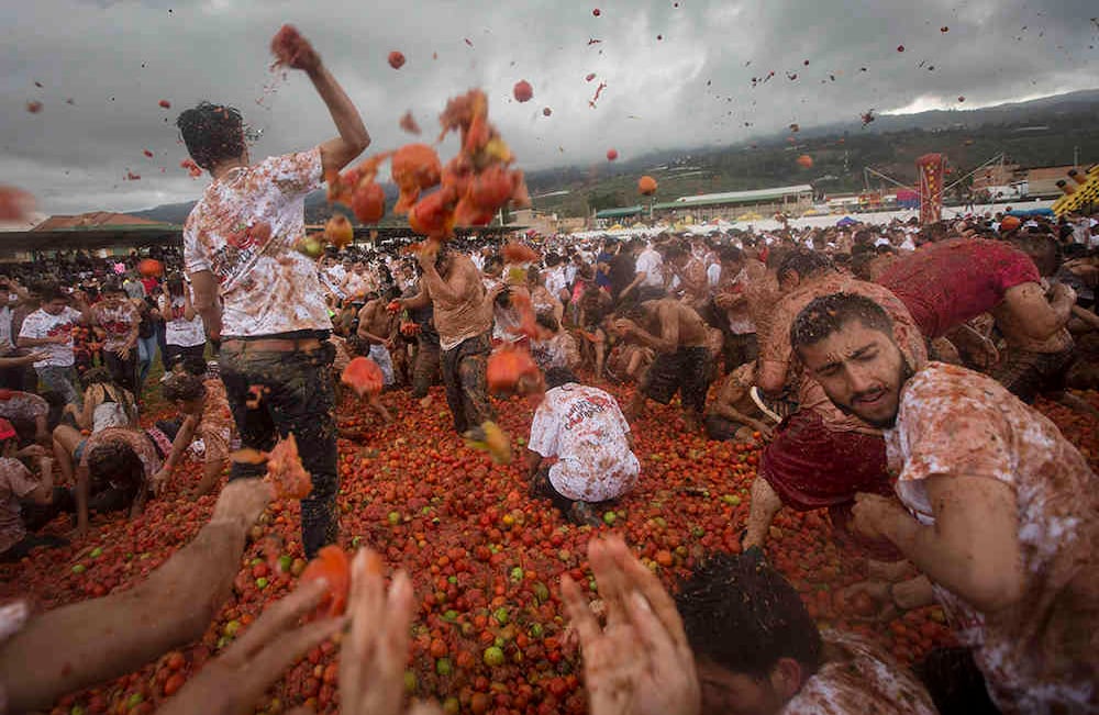 Con 35 toneladas de tomate descartado de las cosechas, se desarrolló la versión 11 de la gran tomatina colombiana