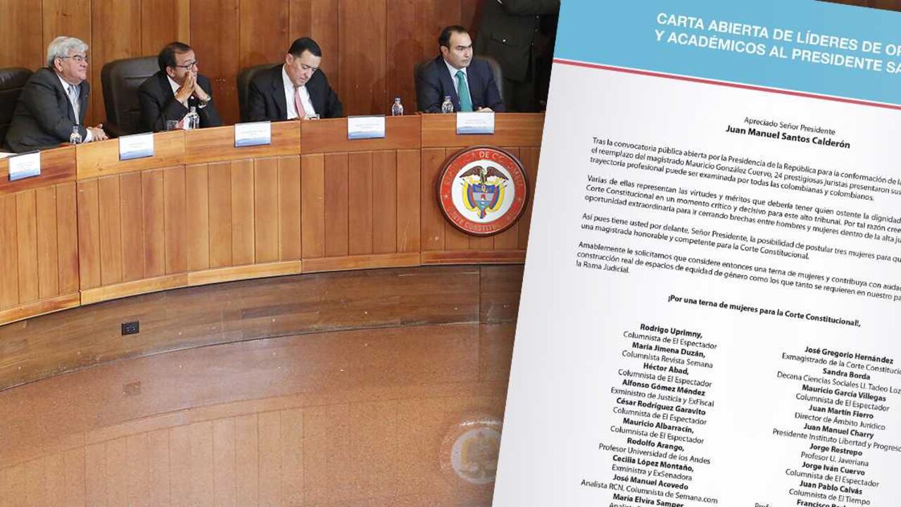 Los líderes de opinión le dicen en su documento a Santos “así pues, tiene usted por delante, señor presidente, la posibilidad de postular tres mujeres para que de allí sea elegida una magistrada honorable y competente para la Corte Constitucional”.