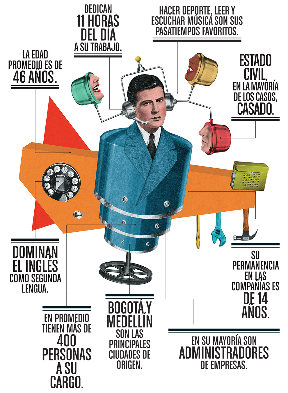 Amantes de la lectura, la música, el cine, los caballos y, en algunos casos, del windsurfing, en su mayoría son ejecutivos maduros que se gozan su trabajo y desayunan, almuerzan y comen con servicio al cliente como plato fuerte. No importa cuántas personas tienen a su cargo: 100, 200 o 1.000, su responsabilidad es la misma: la consecución de una clientela no solo estable y duradera, sino feliz; pues de ello dependerá el cumplimiento de los objetivos en cuanto a ingresos y utilidades.