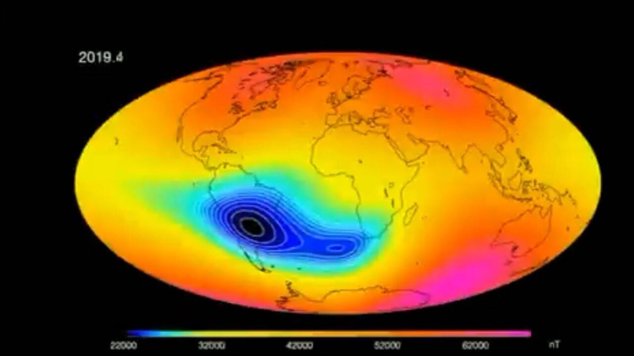 Entre África y América del Sur se ha encontrado una región de intensidad magnética reducida, que ha llamado la atención de los investigadores. Esta anomalía está provocando que los satélites y otros objetos que lanza el hombre desde la tierra tengan fallas técnicas cuando transitan por esta área.
