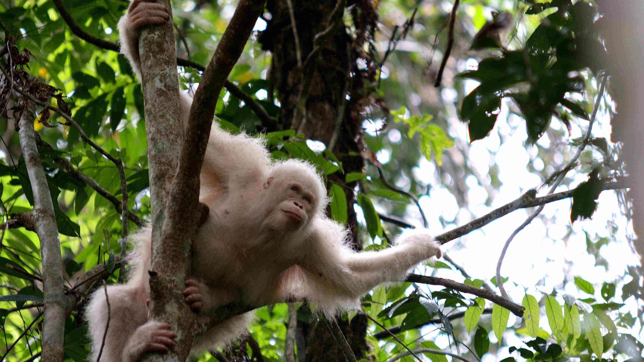 Una orangutana albina, la única que se conoce en el mundo, fue puesta en libertad en una jungla de Borneo (Asia), después de más de un año de haber sido hallada en cautiverio, anunció una oenegé indonesia el viernes.