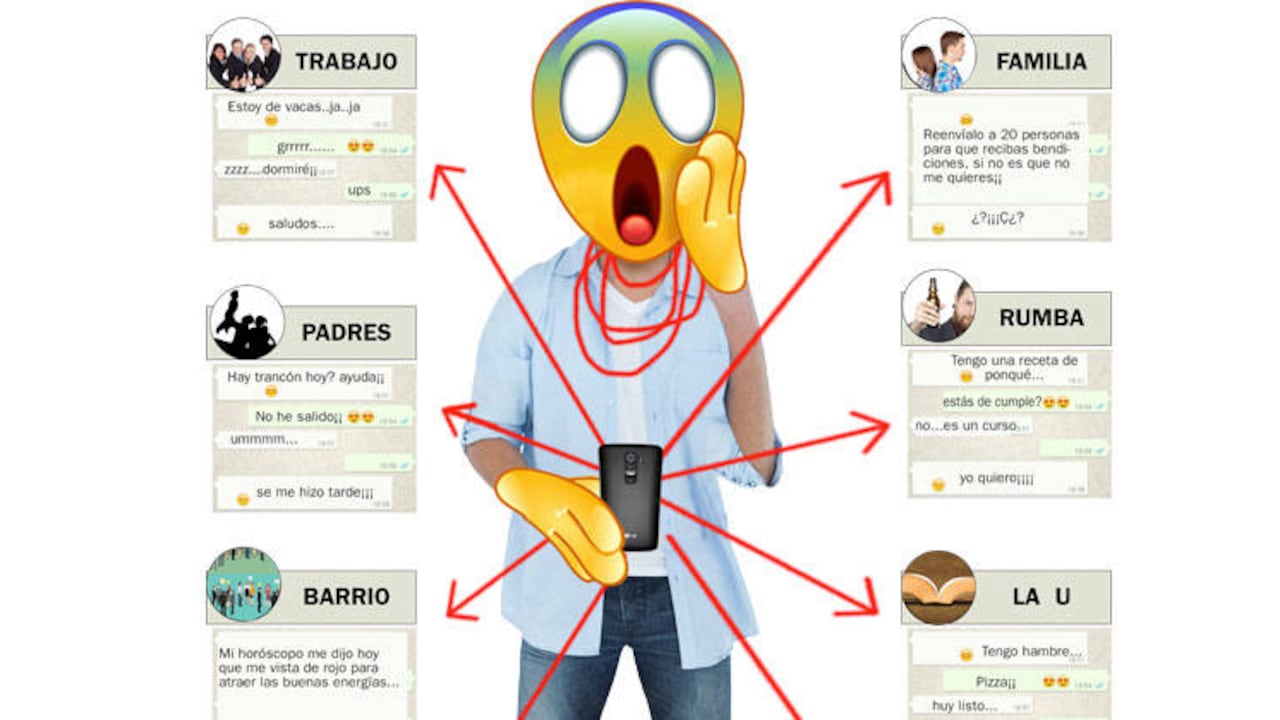 Muchos como Piedad sienten que no pueden hacer nada excepto silenciar el chat. Cristancho, madre de dos, agrega que a veces estos espacios se vuelven un foro para crear un clima nocivo contra los profesores, pero no puede salirse porque necesita estar en contacto. María Téllez también está amarrada a un chat grupal relacionado con el trabajo en el que tiene a 80 proveedores. Cada mañana tiene que revisar más de 100 notificaciones, lo que le demanda mucho tiempo. Los periodistas usan mucho estos chats grupales. Según Valeria Gómez, las fuentes hacen grupos con los encargados de cubrir sus áreas para divulgar comunicados de prensa o intervenciones de los ministros, pero sus integrantes lo usan para hacer propaganda de sus medios, chistes, reflexiones de la vida o para divulgar sus creencias religiosas. “La gente confunde los canales”, dice Andrés Raigosa, experto en redes sociales.
