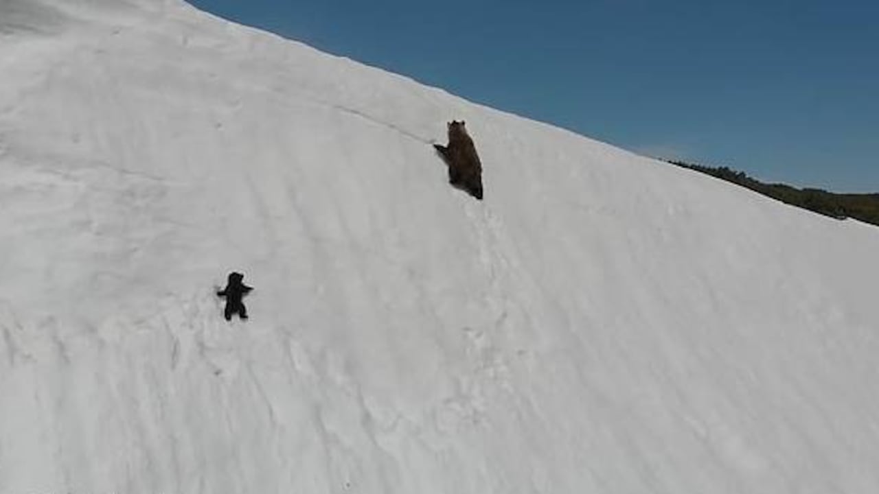 El lazo entre una madre y su cría es inigualable. Así quedó demostrado en un video grabado por medio de un dron en las montañas de la región de Magadan en Rusia. En las impresionantes imágenes aparece un oso bebé tratando de seguirle el paso a su mamá mientras escalan una montaña nevada.