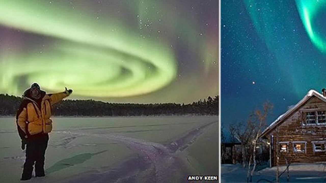En Finlandia, el fotógrafo Martti Rikkonen está brillando los lentes de su cámara en su hogar en Inari, en el norte de Lapland.