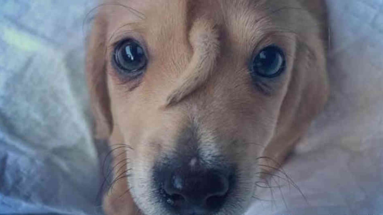 Cuando uno de los miembros de la fundación Mac‘s Missionse encontró con un cachorro afuera de sus instalaciones en Jackson, Missouri, se llevó una gran sorpresa por la apariencia del perro. A simple vista se encontró que el animal tenía una cola en la cabeza.