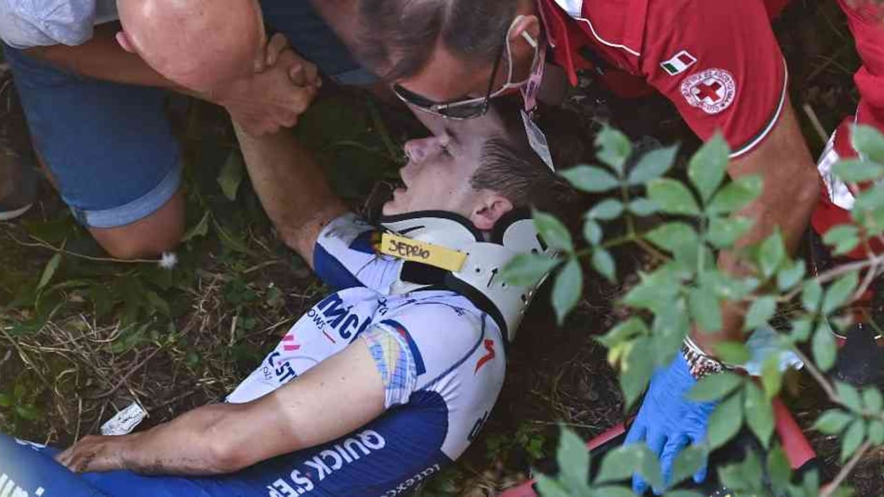 "Caída de Remco Evenepoel en el descenso de Sormano. Os ofreceremos más detalles cuando dispongamos de ellos", tuiteó su equipo, el Deceuninck-QuickStep.