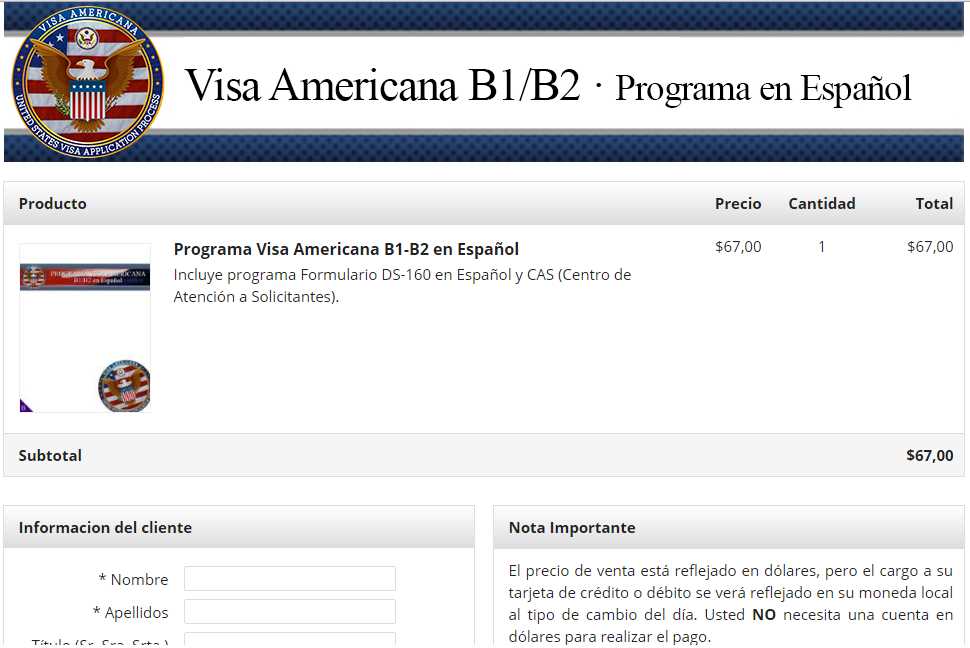 Tenga en cuenta que la visa, con la embajada, tiene un costo de US$160 los cuales usted podrá pagar por internet o haciendo una consignación. Así que cualquier otro costo que no sea éste, será adicional, es decir, lo que pasa es que el formulario en español le costará US$67 más, aparte de la visa, por lo que terminaría pagando en total US$227. Y si quiere asesoría personalizada, deberá sumarle un costo de US$127 (lo atienden de 48 a 72 horas) pero si es urgente, pagando US$187 lo ayudarán en menos de 24 horas. Nuevamente, insistimos, todo esto es un pago adicional al valor básico de la visa y no lo hace la Embajada de Estados Unidos.