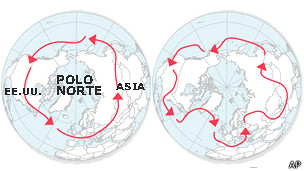 La corriente en chorro del polo norte ha mostrado últimamente algunos cambios en su ruta. Foto: A.P.