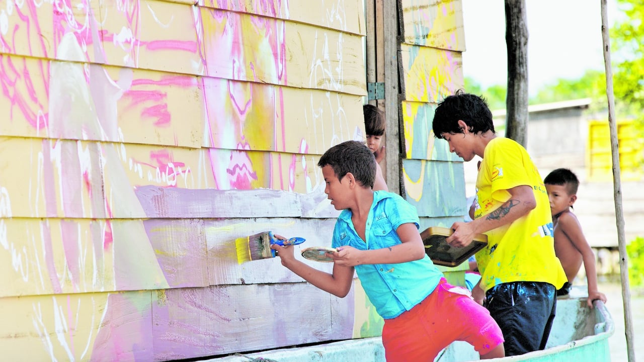 A menudo, hablar de pueblos palafitos supone escenarios grisáceos. En Buenavista, sin embargo, es sinónimo de color y esperanza. © Cortesía Fundación Pintuco