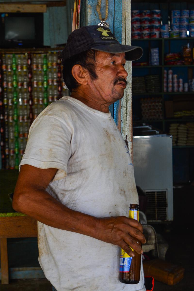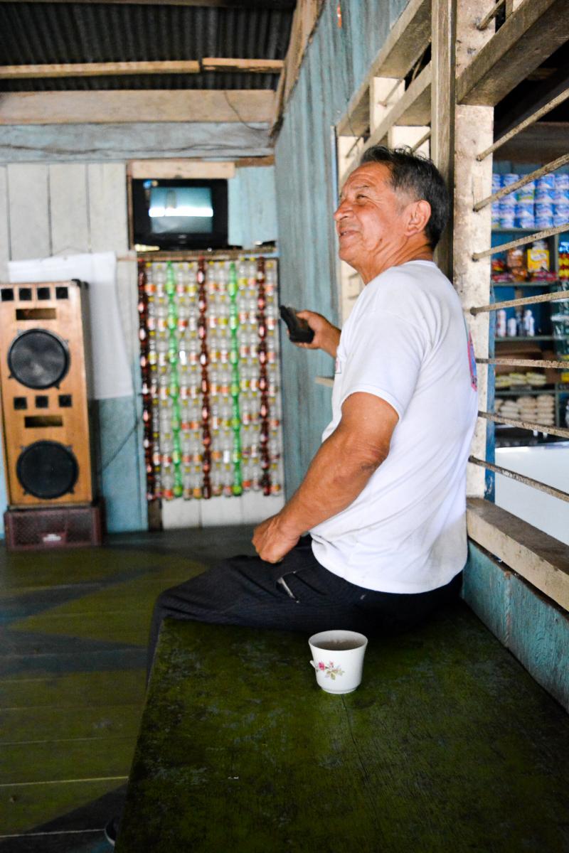 Este hombre de 68 años originario de Cali, cuya profesión era sastre, llegó a la vereda en 1990 porque unos familiares suyos vivían allí y él venía a visitarlos. “Me quedé por aquí porque conseguir dinero en la ciudad es difícil. Entonces me encapriché y me quedé en el monte. Pero me arrepiento, allí la vida era buena”. Agrega que "aquí el gobierno nos da muy duro... Siempre es críticas, humillaciones, fumigaciones, grupos al margen de la ley y paramilitares".