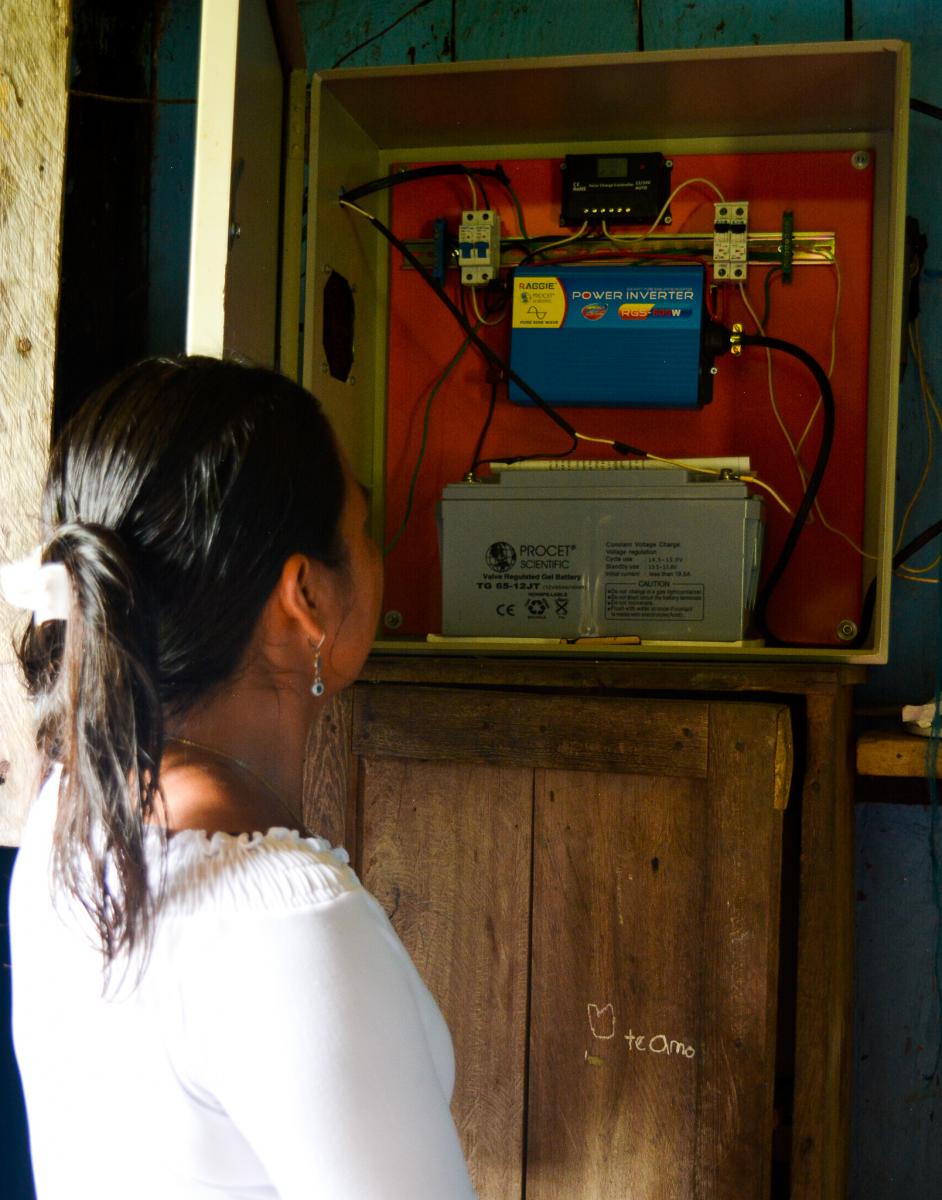 “Cuando llegó el proyecto de los páneles solares me pareció excelente, pero no sabía mucho del tema. Al preguntar en algunas casas y mirar cómo podían tener acceso al servicio sin pagar un recibo, dije, genial”, contó la profesora. “Los niños ya habían hecho las tareas entre las 8 y 10 de la noche, porque ya prendian los bombillos. Todo se veía más clarito y podían jugar hasta más tarde”.