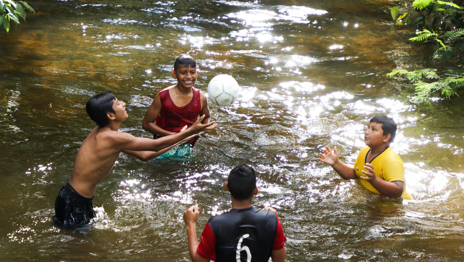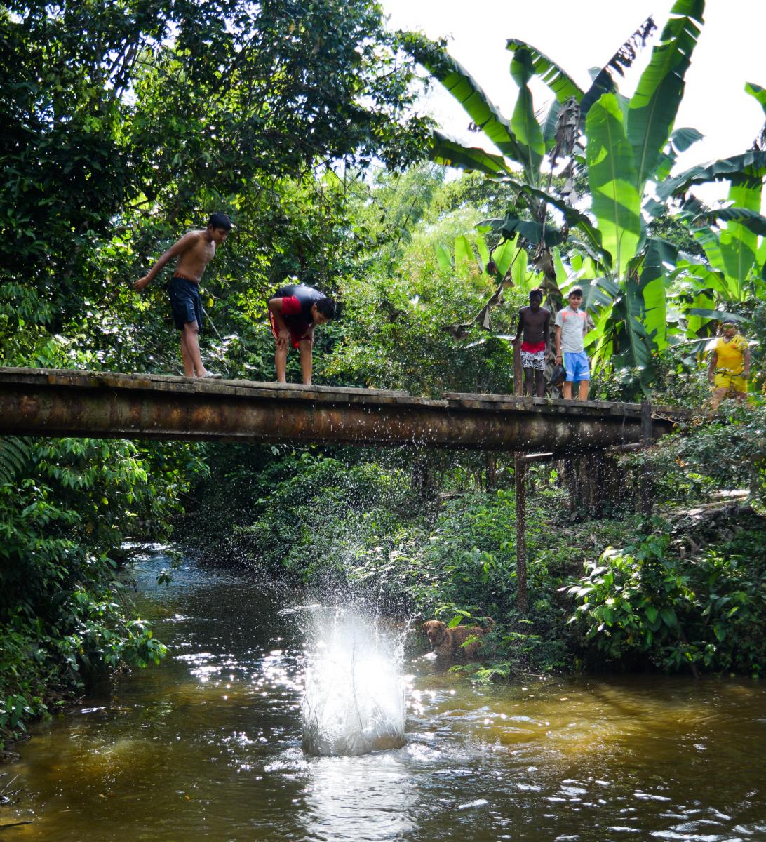 El conflicto armado mantuvo ocultas muchas zonas de diversión comunitaria en Putumayo. Este lago en la vereda El Venado ahora es la zona de juego de niños, jovenes y adultos. ©Andrés Machete.