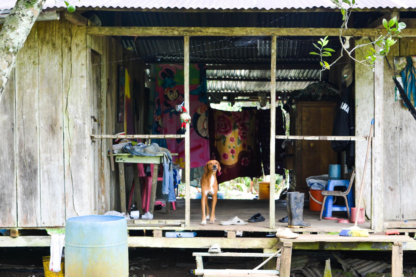 Los animales son los fieles guardianes de está vereda. Solo hay dos en el lugar y como grandes compañeros siempre están al pendiente de sus amos. Todos los vecinos tienen que ver con ellos y van de casa en casa. © Brenda Guerrero.