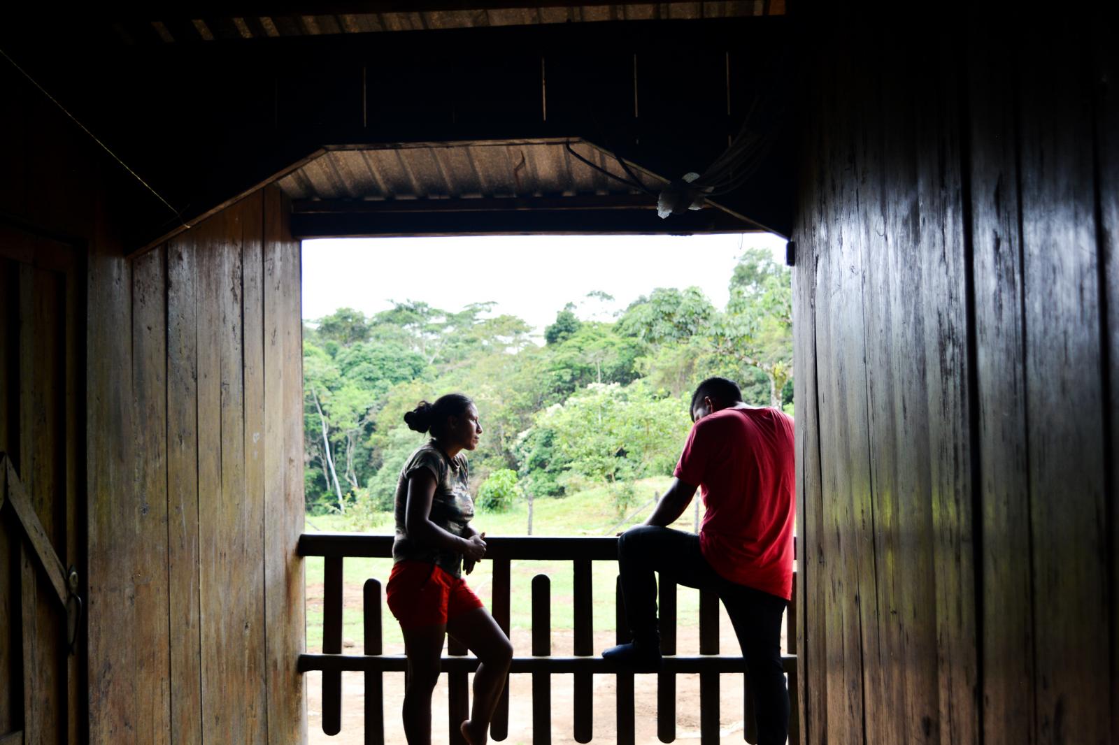 Para la profesora fue una motivación enseñar con velas en pleno siglo XXI. Todos los días llega desde el Valle del Guamuez, la cabecera principal de la Hormiga, sube la trocha y llega a dar clases de 8 a 12 de la mañana. Al terminar retoma su camino para regresar a casa. © Andrés Machete.