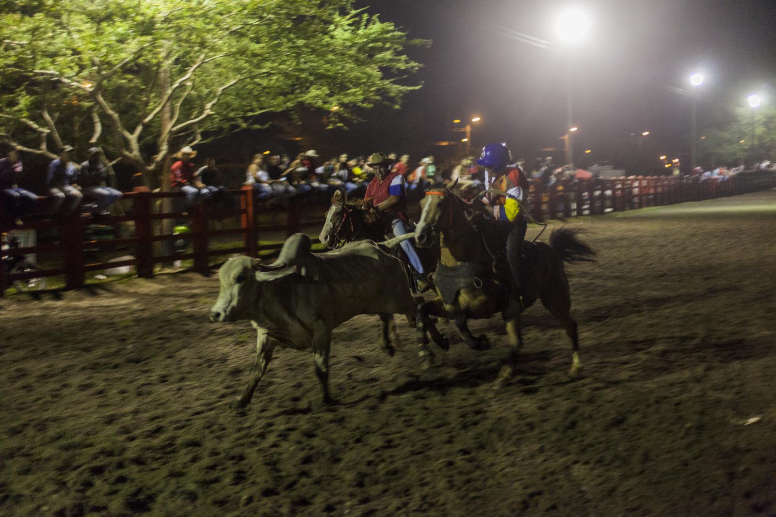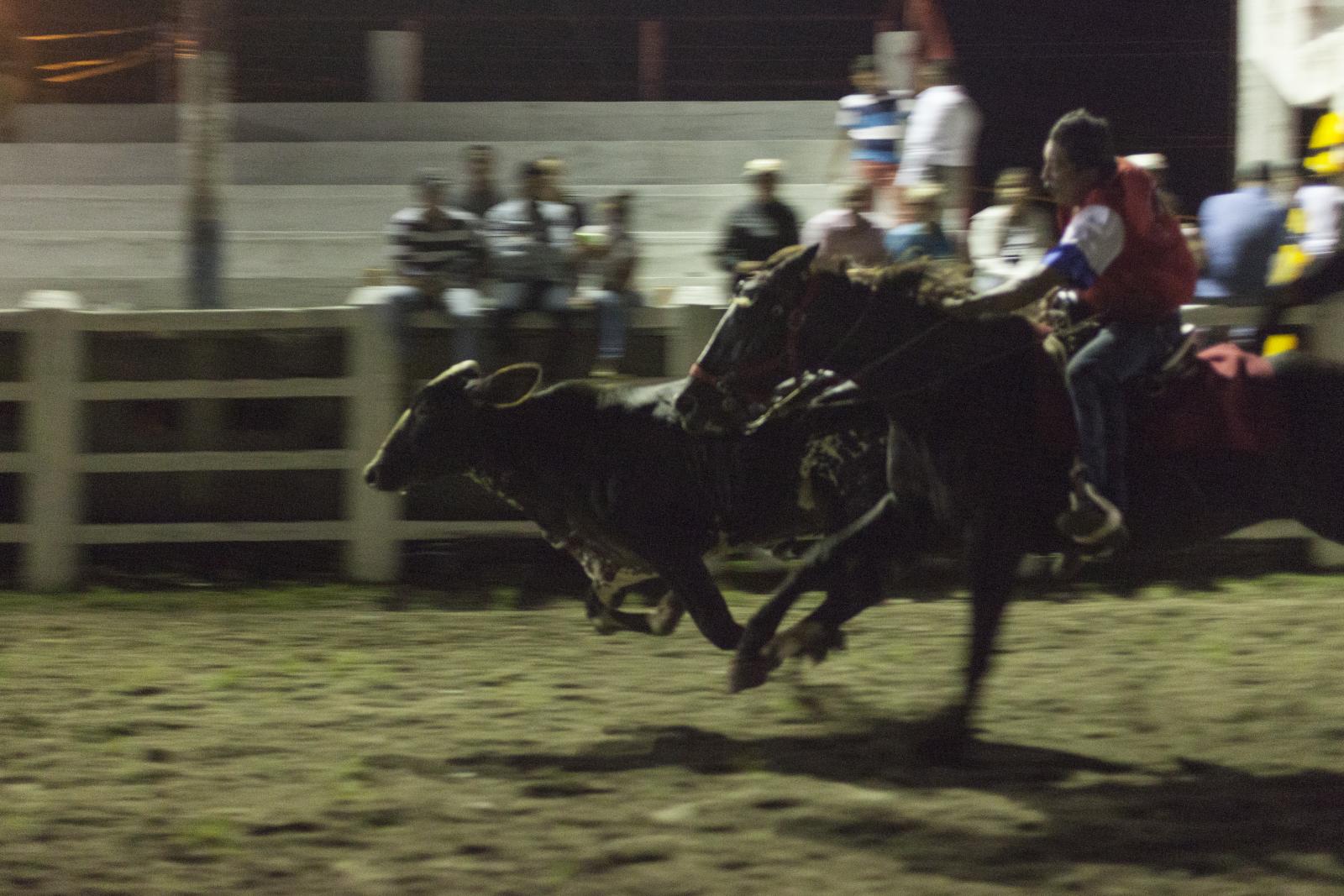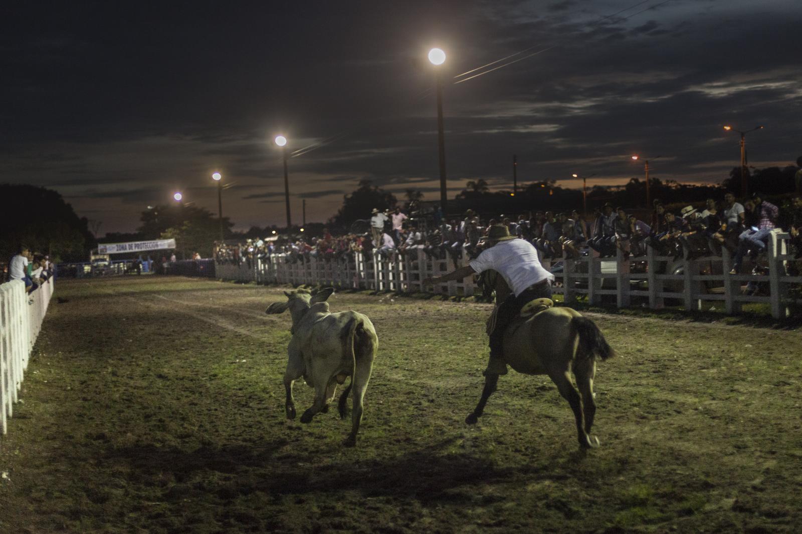 La primera tarde tras llegar al pueblo fuimos al torneo de coleo. Consiste en tumbar un toro cogiéndolo por la cola mientras se cabalga a toda velocidad. Ese día homenajeaban a las viejas glorias de este deporte llanero.