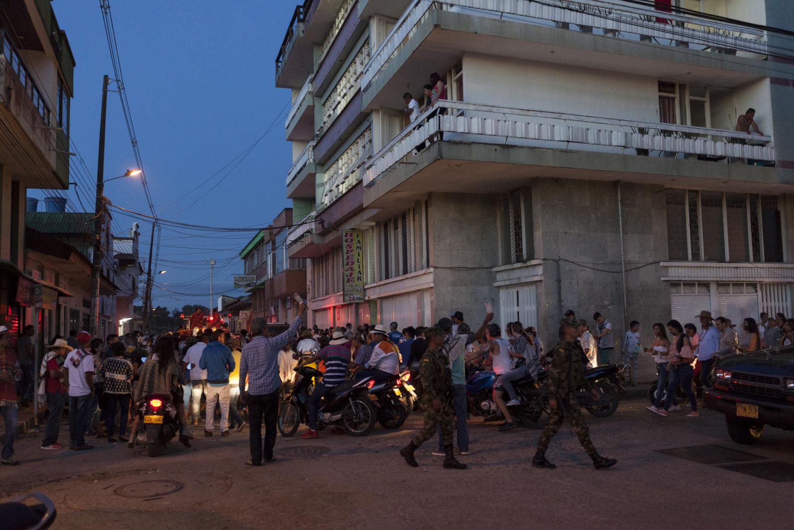 Aterrizamos en Villavicencio y luego tomamos un bus hacia San Martín. Es un viaje de dos horas. El pueblo dura enfiestado por una semana. Desfiles, conciertos y torneos de coleo -el deporte de los vaqueros llaneros- hacen parte de la programación. Todos los sanmartinenses, sin excepción, dejan sus labores diarias para entregarse a los eventos que encierran las cuadrillas.
