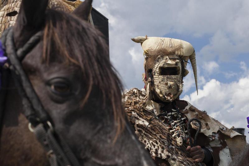 Nosotros nos enteramos de las cuadrillas hace un tiempo. Nos contaron de qué trataban y de inmediato nos llamó la atención. Al ver en fotos los disfraces de los cuadrilleros, los jinetes que participan en el baile, decidimos viajar desde Medellín hasta el Meta. Los artesanos que fabrican los trajes usan pieles y huesos de reses y otros animales del llano.