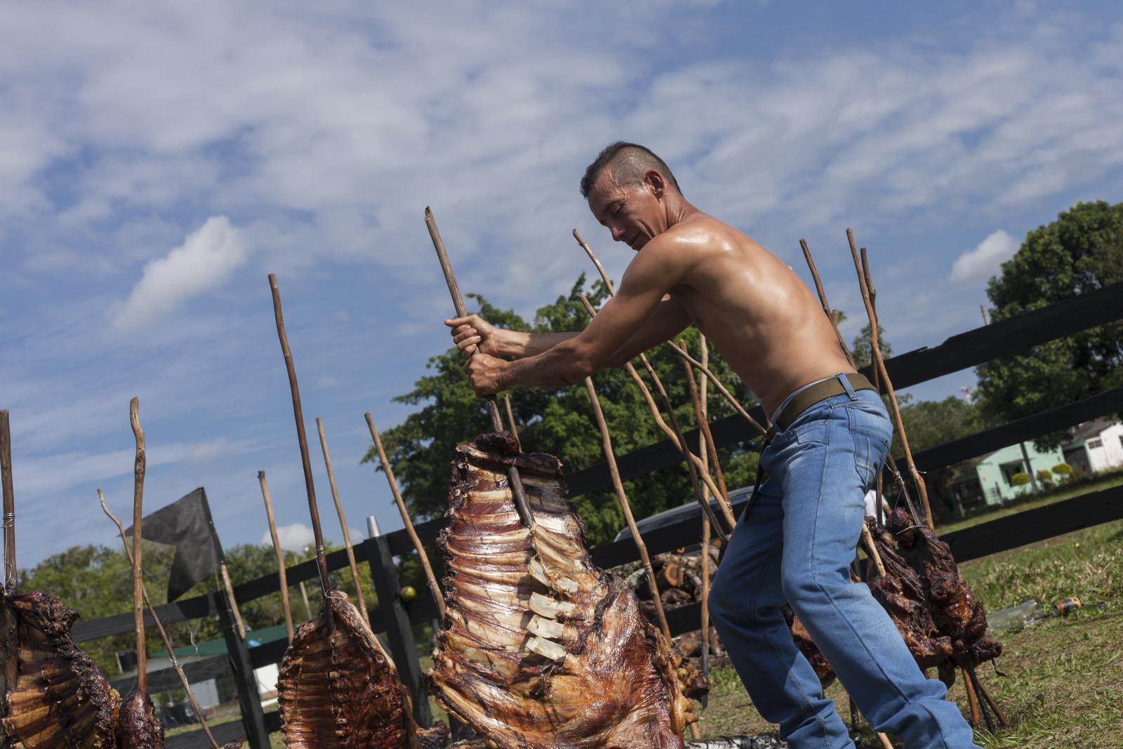 Darío nos invitó a almorzar a El Tigre, un restaurante insignia de los cachaceros. El lugar está decorado con detalles relacionados a las cuadrillas. De repente, varios cuadrilleros de la misma raza llegaron. Éramos una mesa grande tomando cerveza sin parar mientras ellos contaban anécdotas. Bromeaban entre ellos.
