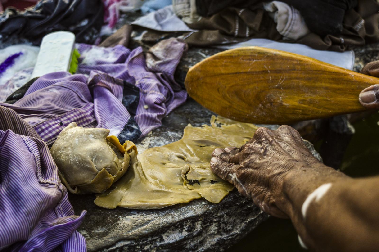 Antes de mojar la ropa, con los manducos presionan las barras de Oro, un jabón hecho a base de grasas de origen vegetal, hasta convertirlas en capas delgadas para enjabonar como se debe las prendas. El manduco es como un bate pequeño hecho de madera y su papel en el proceso de lavado es fundamental. A más 'garrotazos', mejor se despercude cualquier tipo de mancha.