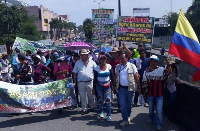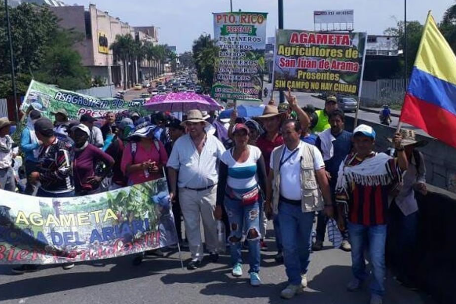 Campesinos del sur del Meta marcharon hasta Villavicencio para pedir soluciones a los problemas de comercialización de sus productos. © CORTESÍA.
